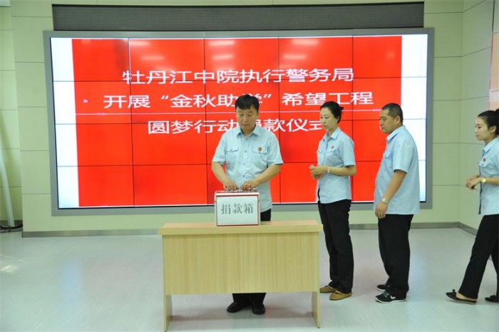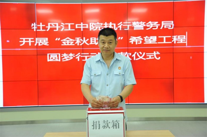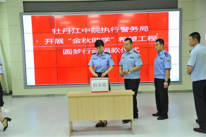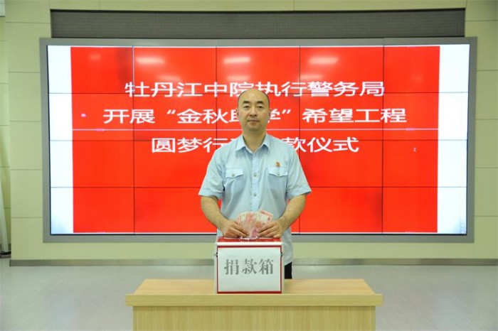 2017年7月6日,牡丹江中级人民法院执行警务局为响应牡丹江团市委开展的“金秋助学”希望工程圆梦行动的号召,开展了“为贫困学生献爱心”捐款活动,将每一份爱心送到经济困难且品学兼优的困难学生手中,播撒爱心,让寒门学子的梦想翅膀在爱心中放飞。