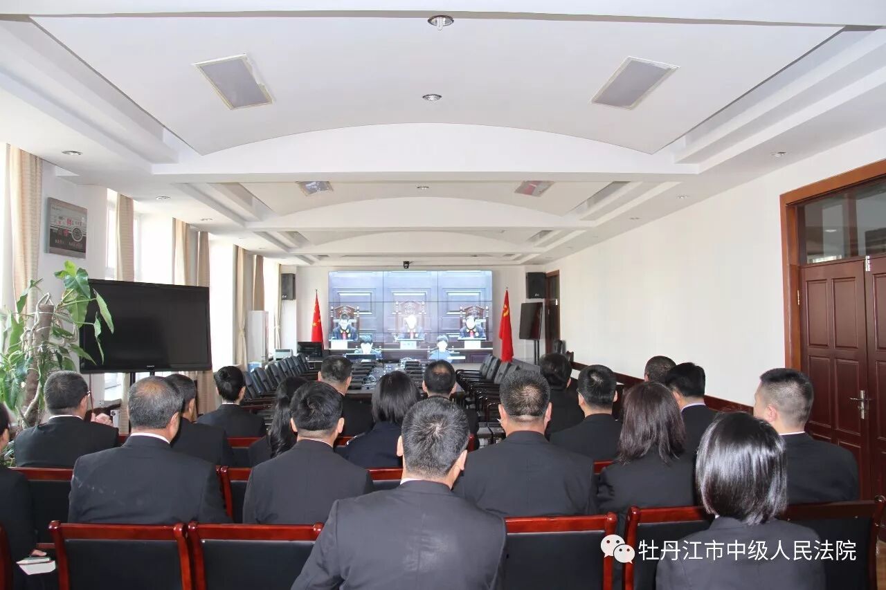 牡丹江两级法院结合工作实际,采取集中、分组收看方式,组织广大干警网络在线观摩庭审。