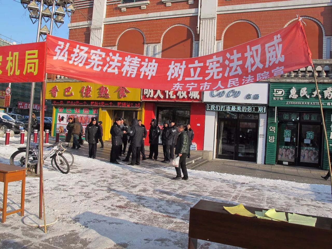 东宁市法院开展“弘扬宪法精神 树立宪法权威”法治宣传活动。