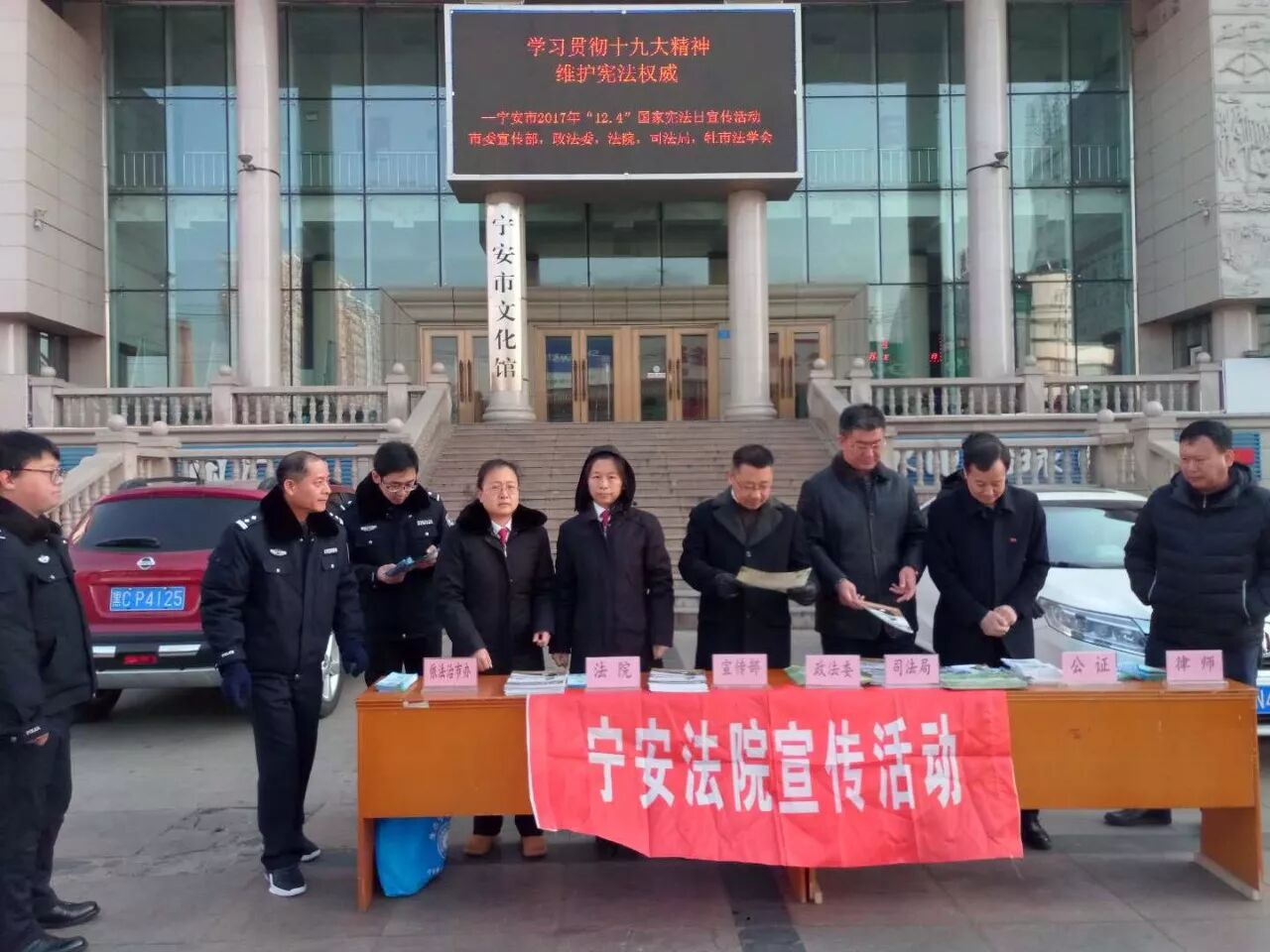 宁安市法院青年干警走上街头,向人民群众进行普法宣传;邀请宁安市第四中学师生50余人走进法院,参加“公众开放日”活动。