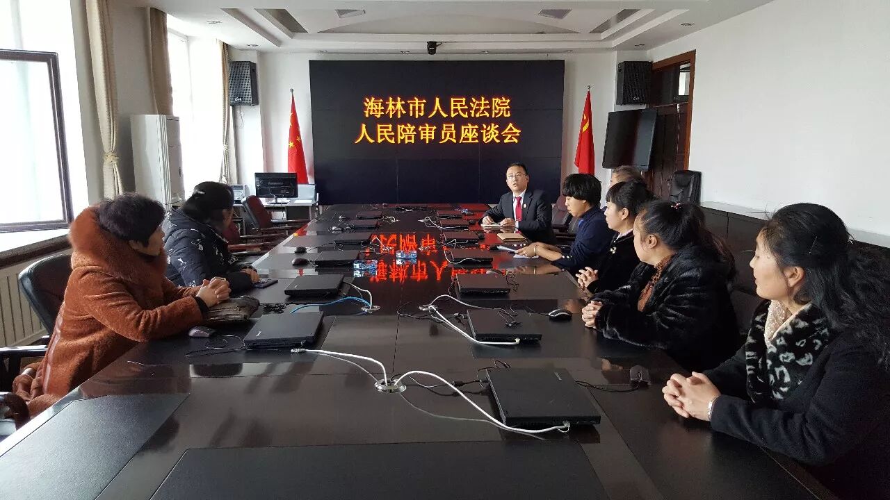 海林市法院邀请人民陪审员代表一行8人参加“公众开放日”活动,并举办座谈会。