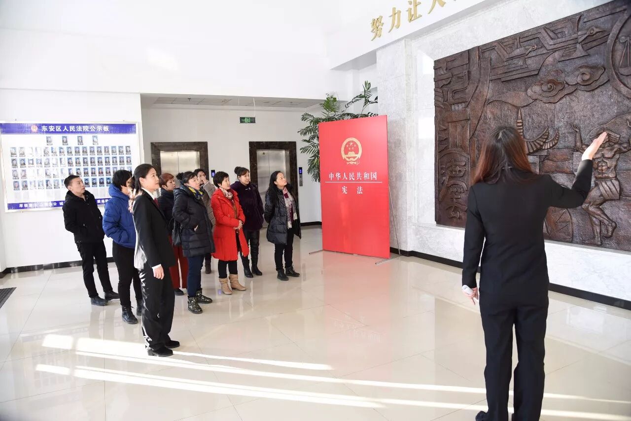 爱民区法院邀请区人大主任赵秀红,区委常委、政法委书记陈丽华,区人大副主任冯明志以及牡丹江师范学院15名学生代表参加“公众开放日”活动。