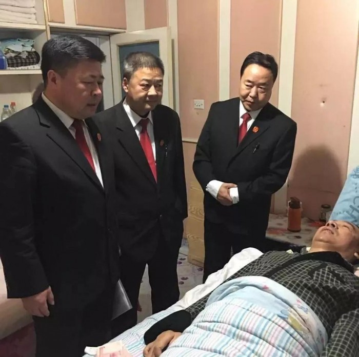 2018年新春伊始,东安区法院执行警务局干警来到申请执行人杨某家中,为他送来被执行人给付的执行款。杨某躺在病床上一直说着“谢谢”,感谢执行干警们的辛苦付出,能让他全家能过一个祥和的春节。