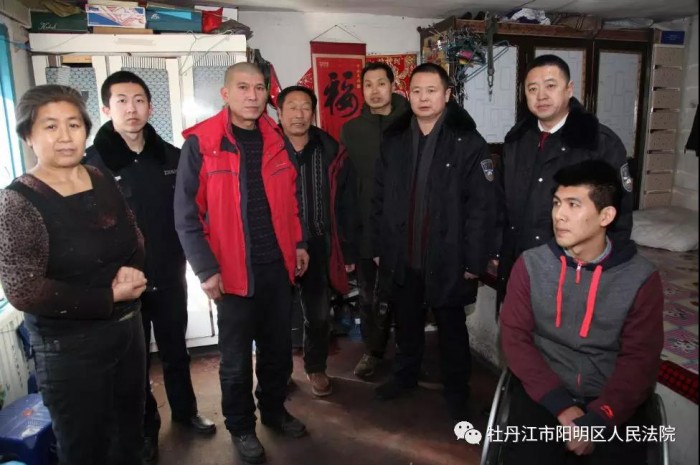 为了让申请执行人过一个安心、温暖的春节,1月26日上午,阳明区法院党组成员、执行警务局局长王伟东一行三人,来到磨刀石镇远景村梁晨家中,为他一家送去了9万元的司法救助金,并送上了节日的慰问与祝福。