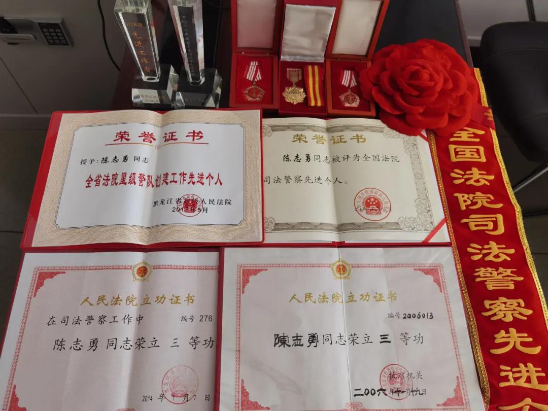 自参加工作以来,陈志勇获得多项荣誉。2006年、2007年、2014年先后荣立三次三等功;2007年9月,在全省法院第七届法警业务技能比武竞赛中获男子组总成绩第四名;2008年至2011年,连续四年获“优秀指挥员”称号;2011年9月,在全省法院第八届法警业务技能比武竞赛中被授予“优秀指挥员”称号;2015年6月,被评为“全国法院司法警察先进个人”;2017年5月,被评为“全省法院星级警队创建工作先进个人”;2018年7月,在全省法院司法警察教练员教学技能竞赛中荣获“警务技能科目”第三名。
