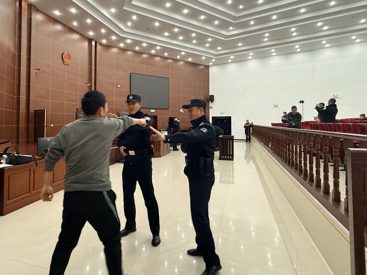 在突发事件应急处置环节,法警支队紧密贴合审判执行实际,模拟设置冲击法庭、扰乱办公秩序、当事人突发极端行为等多种实战场景。各参考警队接到指令后,迅速启动应急预案,警力部署科学、战术运用合理、处置流程规范、控制措施得当,充分展现牡丹江法院司法警察扎实的应急处置能力,有效检验日常训练成效和实战水平。