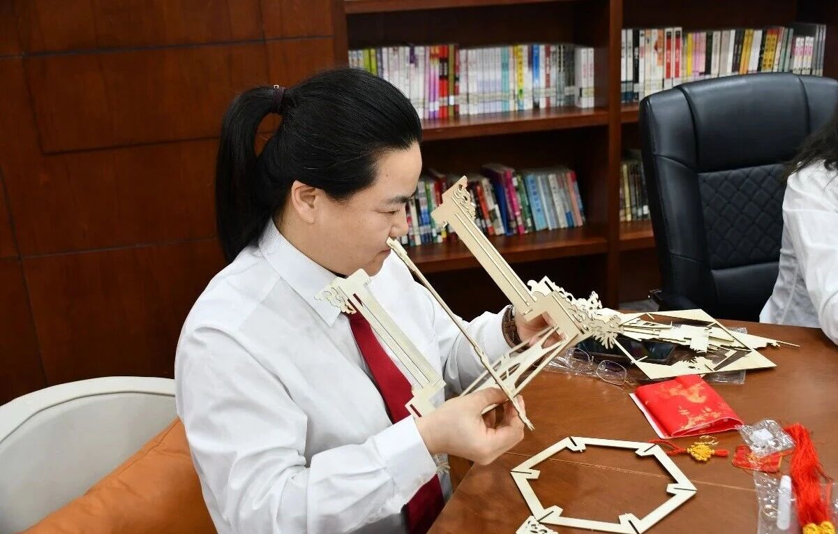 “榫卯结构不用一颗钉子,全靠木材的咬合固定,这是非遗技艺的精髓。大家拼接时要注意对齐接口,用力要均匀。”在老师的现场示范下,干警们体验非遗技艺的独特魅力,感悟指尖流转间的匠人精神,赋能新时代审判执行工作高质量发展。